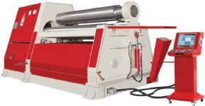 Standardausführung: Konischbiegeeinrichtung Induktionsgehärtete Walzen Digitale Anzeige für Seitenwalzen Maschine aus Stahlkonstruktion (ST-52) Separates Steuerpult Zwei Geschwindigkeiten (langsam &schnell) Alle Walzen auf Kugellager Klapp-und Stützlager der Oberwalze werden vom Steuerpult aus betätigt. Bei Öffnung der Klapplager fährt die Walze automatisch nach oben Konische Einstellung der Walzen über Steuerpult Zentralwalzen werden über Hydraulikmotor und Umlaufuntersetzungsgetriebe angetrieben (Ober- und Unterwalzen) „Not-Aus”-Schalter an großen Maschinen stoppt in eventuellen Notsituationen sämtliche Funktionen der Maschine „Not-Aus”-Schalter, an beiden Seiten der Vorderfront und am Steuerpult Fertig gerundetes Material kann durch das hydraulische Öffnen des Klapplagers und Aufheben der Oberwalze einfach entnommen werden |