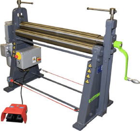 Die motorische Rundbiegemaschine Typ RM ist eine stabile motorgetriebene Maschine, die komplett mit Motor 220/380V Drehstrom, sowie einem fußbetätigten Wendeschalter mit Schutzhaube – Schutzart IP54 geliefert wird. In CE-Ausführung ist die Maschine mit Not-Stop- Sicherheitsausrüstung und Bremsmotor ausgerüstet. Auf Wusch kann die Maschine mit einer Ausrüstung zum Konischbiegen ausgestattet werden |